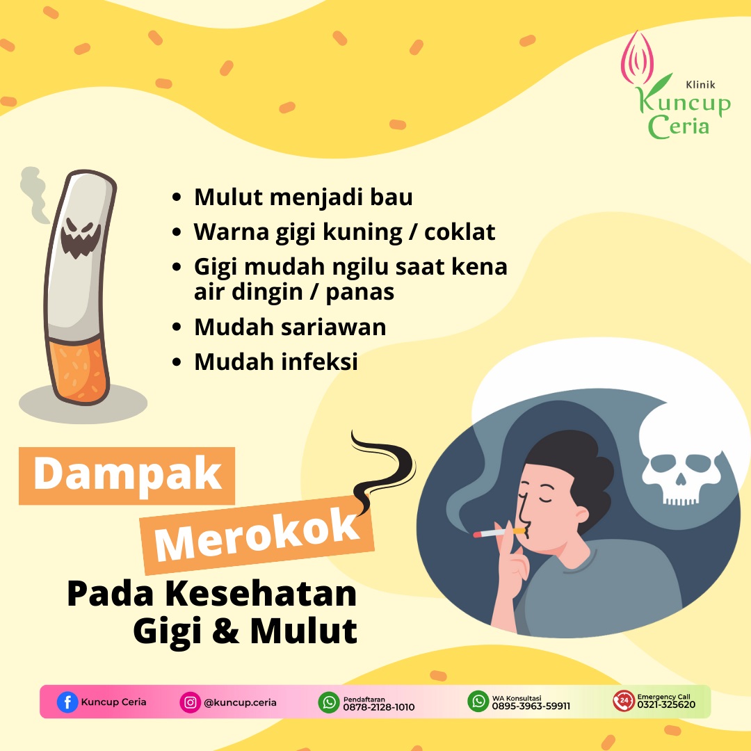 Tahukah Anda, kebiasaan merokok juga menimbulkan dampak negatif bagi kesehatan gigi dan mulut lho.